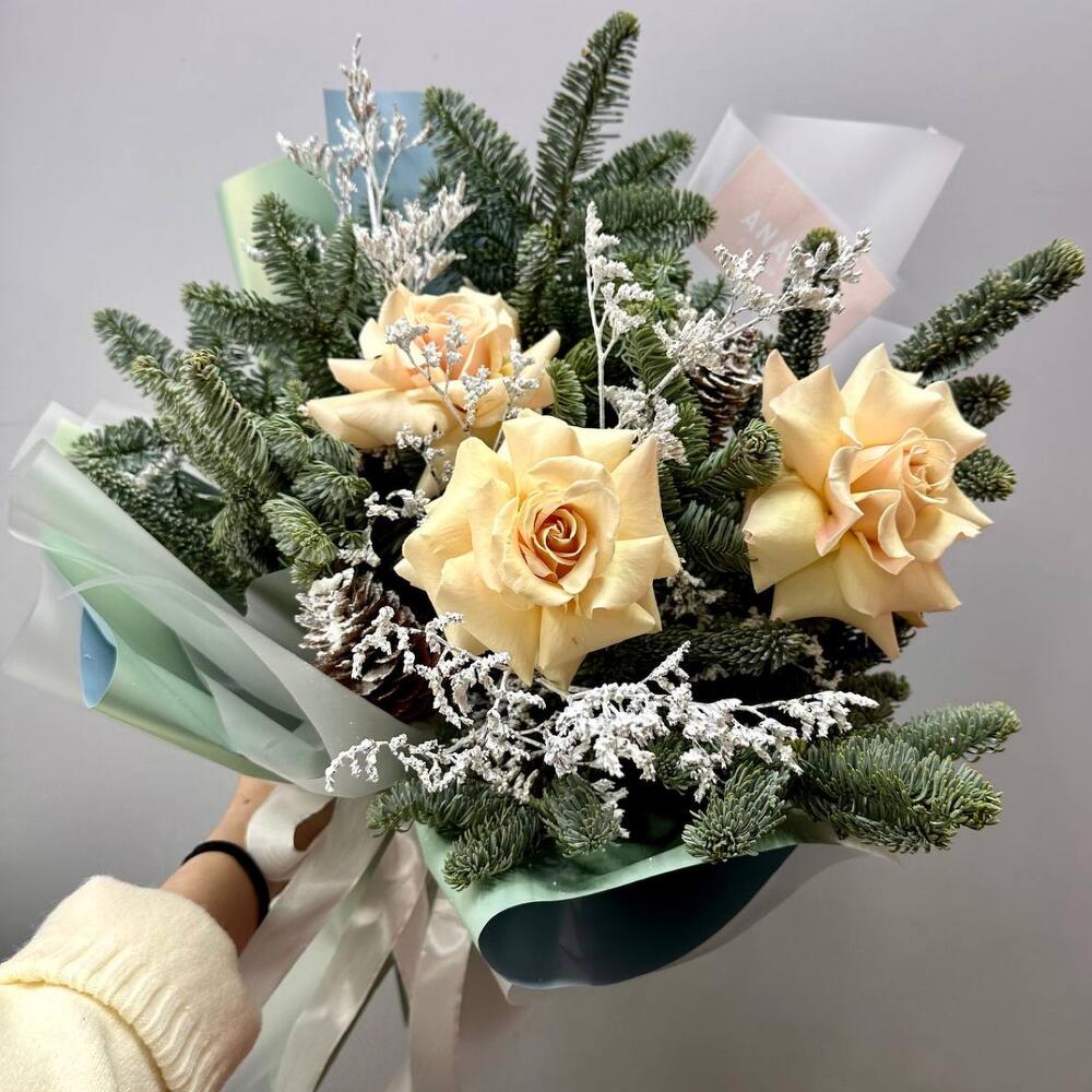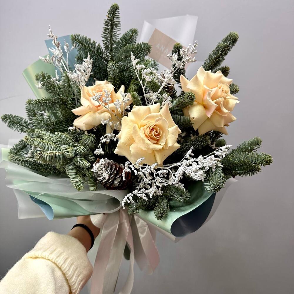Зимний букет с нобилисом и розами в Онеге